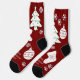 Christmas socks featuring a whimsical design. The socks are adorned with artwork of Christmas trees, stockings, ornaments and gifts. The art is surrounded by snowflakes, with room for names or a custom message on each sock! Message MineByDesign for help with this design or any other design you envision!