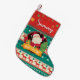 Bring festive cheer to your holiday decor with this adorable personalised Christmas stocking featuring Santa Claus, Christmas trees, and gifts in a cosy knitted-style pattern. Customise with any name to create a unique and heartwarming gift for your child, family member, or friend.
