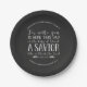 Personalised Christmas Bible Verse Typography on Chalkboard Party Paper Plates featuring Luke 2:11 in festive typography on a rustic chalkboard background, with quaint flourishes of white pine branches and pine cones. Perfect for a family gathering, church event, or just to have on hand to remember the Reason for the Season! Created by Zazzle pro designer BK Thompson © exclusively for Kate’s Creations; please contact us if you need assistance, have questions, or would like to enquire about custom work.