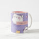 Personalised Chubby Cat & Pastel Star Pattern Two-Tone Coffee Mug