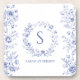Introducing our Personalised Classic Blue Flowers Floral Pattern beverage coaster. Personalise it with your initial for unique touch. Suitable as gift for vintage art lovers.