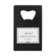 Celebrate your groomsman with this sleek, personalised bottle opener. Featuring a classic black-and-white design, this opener can be customised with a name, role, and wedding date, making it a unique and practical gift. Its compact, credit card-sized shape slips easily into a pocket, perfect for toasts and celebrations throughout the wedding festivities. This refined accessory adds a touch of sophistication to every event and serves as a timeless keepsake for your groomsman to cherish long after the big day.