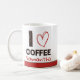 This personalised coffee mug features the phrase “I ♥ Coffee” with bold lettering filled with a stylish coffee bean pattern. Add a custom name to create a unique mug that celebrates your love for coffee.