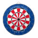 Customise this with your own text and colours! Example shown has the top text "Dartboard College" and bottom text "Class of 20XX" with a blue, red, grey, black, and white colour palette.