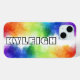 An iPhone case with a rainbow hued colour "explosion", personalised with your name! Fully customisable on your own, or contact MineByDesign for help creating your design vision on a phone case or any Zazzle product!