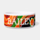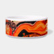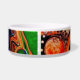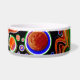 Orange, green and black colourful artsy fluid art pet food bowl. Add your dog or cat's name in the personalise area.