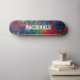 Have fun and sharpen your balancing skills as you roll down the sidewalk on this modern, colourful personalised skateboard. Retro-inspired, psychedelic abstract design with customisable placeholder name, so you can add your name or text of similar length. Text is in a bold white sporting typeface, so it stands out clearly against the vibrant colours. Great gift for birthdays, Christmas, Mother's Day, Father's Day (hey, why not?), etc. Get some air in your hair when you're skateboarding on a skateboard designed by Berean Designs. Matching items are available, so you can create some awesome gift sets.