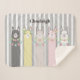 The product design features an illustration of retro colourful decorated llamas. This adorable animal design with white stripes makes a cute modern and unique small Sherpa blanket with personalised text and background colour.