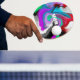 Red, Lime green, blue, purple, blue, black and white marble digital fluid art. Add a name to this ping pong paddle.