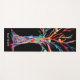 This brightly coloured yoga mat is decorated with a mosaic tree in rainbow colours on a black background.