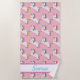 Girly, colourful, rainbow unicorn beach towel where you personalise with your name.