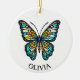 Personalised Christmas ornament with a butterfly on the front and a personal message on the back.