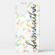 Personalised confetti dot pattern iPhone 12 case. Customisable background colour and dots size. Fun cheerful dots print design for women and girls. Cute Birthday or Christmas gift idea. Pink blue yellow and green colours. Handwriting typography.