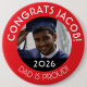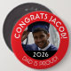 Show your favourite graduate how proud you are by wearing a personalised graduation button! This button is easy to customise with the graduate's name, photo and graduation year. All text and the photo is simple to update to your liking.