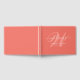 Elegant personalised coral monogram wedding guest book with modern script. Easily personalise online. Matching items available to complement this minimalist monogram wedding guest book. For custom requests, please contact us via Zazzle chat.