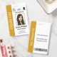 This professional employee ID badge features a modern mustard gold and white colour block design, perfect for corporate branding and creative teams. The front includes a clear photo placeholder, company logo area, and employee details, while the back provides space for return addresses and a scannable barcode. Durable and easy to read, this vertical badge is an essential tool for office security, networking events, and maintaining a polished brand identity.