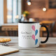 The custom coffee mug showcases pink and blue half hearts, along with up to four typography fields for names, titles, or messages. Currently, it displays "Best MOM Ever!" and "Best DAD Ever!" in an elegant and adorable design. This personalised mug is a perfect and thoughtful gift for coffee lovers, especially parents, grandparents, newlyweds, or couples celebrating anniversaries or special occasions.