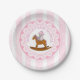 Pink and white lace rustic country and western baby shower plates. Cute baby in cowboy hat and boots on a rocking horse.