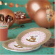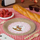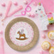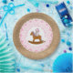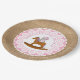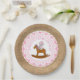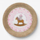 Pink and white lace rustic country and western baby shower plates. Cute baby in cowboy hat and boots on a rocking horse.