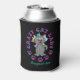 Oval shape, CRAZY CAT LADY with paw prints at the base to complete the oval is filled with a colourful gradient. A grey mama cat has kittens in yellow, teal, blue, green and purple peeping out from behind her. The font colour, type and size can be changed to suit. The black background the image is shown on can be changed to another colour as well. Three styles of coolers to choose from.
