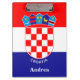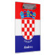 This personalised clipboard features the flag of Croatia with the coat of arms, and customisable name of the country and additional text (name) in white font, placed at the bottom.