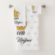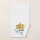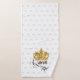 Add a clean and elegant touch to your bathroom with this classy bath towel set. It features a personalised classic design with queen text and golden crown print on discreet little crown pattern background.