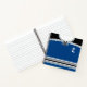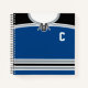 8.5" x 8.5" Spiral Notebook with laminated covers, and a choice of paper style, including sketchbook, ruled, half ruled, graph. The front and back of the notebooks have customisable jersey style designs, allowing you to add your own choice name and number to the back, and an 'A' or 'C' or number on the front, use the boxes to the right of the image to change the text.