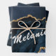 Personalised Custom Name Navy Blue Gold Marble Wrapping Paper Sheet