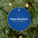 Happy Hanukkah blue and white modern typography minimalist personalised Hanukkah ornament.