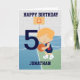 For the birthday boy who loves basketball, here is a cute design featuring a a young basketball player wearing red and navy blue basketball uniform and holding a basketball on a basketball court. The text is fully customisable for your own special occasion. Visit CelebrationBazaar to view the collection of gifts, stationery and party favours featuring this cute basketball design.