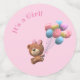 Personalised Cute Bear and Balloons design features that loveable little bear as she clutches a bunch of balloons. Each piece of confetti displays a slightly different design. Largest size features "It's a Girl!" as an arch over the image. Reverse side displays child's name. Medium size features same image on front, with reverse side displaying baby's due date. Smallest size displays an image of a pink bow on one side, bear and balloons on the other. Designed to coordinate with the "Cute Bear and Balloons Themed Baby Shower invitations, thank you cards, and accessories. All text is customisable.