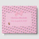 Personalised Cute Bear and Balloons design features a pattern of pastel coloured balloons as background to child's name and due date, which is displayed across centre of pattern, against a pink border. Reverse side features a single image of a loveable little bear as she clutches a bunch of balloons. Designed to coordinate with the "Cute Bear and Balloons Themed Baby Shower invitations, thank you cards, and accessories.