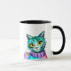 Add a name to this Teal, purple, pink and blue kitty cat with yellow eyes coffee mug.