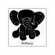 Decorate party supplies, use to label your books or add a special touch to scrapbooks with this fun rubber stamp featuring a simple cute cartoon illustration of a baby elephant and your own name or short message.