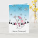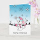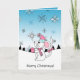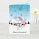 Adorable hand drawn cartoon funny festive pink and blue mouse eating a snowflake on a wintery snowflake filled day. On the inside of the Christmas card you can add your family names and custom message.