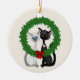 Personalised Cute Cat Couple and Wreath Christmas Ceramic Tree Decoration