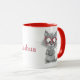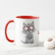 Personalised Cute Cat Reading Mug with Red Handle