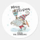 Personalised Cute Christmas Gnome Ice Skating Classic Round Sticker