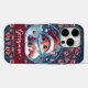 Protect your phone in festive style with the personalised “Cute Christmas Kawaii Fox Dot Mandala” phone case. This charming design features an adorable cartoon fox wearing a Santa hat, sitting on a snowy surface surrounded by an intricately detailed mandala border. The border is adorned with paisley and floral patterns in a vibrant red, white, and blue colour palette, accented with snowflakes and delicate ornaments to create a whimsical holiday aesthetic.