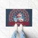 Welcome guests with holiday cheer using the personalised “Cute Christmas Kawaii Fox Dot Mandala” doormat. This delightful design features an adorable cartoon fox wearing a Santa hat, sitting on a snowy surface surrounded by an intricate mandala border. The mandala showcases paisley and floral patterns in a vibrant red, white, and blue colour palette, accented with snowflakes and ornaments to create a festive and whimsical look.