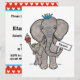 A sweet illustration of an elephant and baby. The baby is holding up a cupcake covered in sprinkles and they are both wearing crowns.