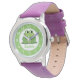 Personalised cute green frog kids watch designed with an adorable green frog in the centre with green around the outer edge and the numbers in white. Your name that you personalise yourself is custom printed in green below the frog. It's perfect for anyone who loves cute smiling frogs and the colour green. Choose your watch band colour!