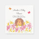 Personalised baby shower napkins with an adorable hedgehog hiding in a meadow of pink and yellow flowers.