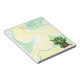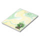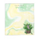 Personalised notepad with an adorable hand drawn grey kitten sitting in an antique bucket of catnip. Green and yellow marble background.