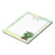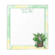 Personalised notepad with an adorable hand drawn grey kitten sitting in an antique bucket of catnip. Green and yellow marble background.