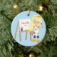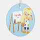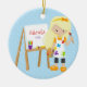 Cute & Bright little artist girl Christmas Ornament set on a blue polka dotted background featuring a blonde artist girl with an easel & paints. A Wonder Christmas gift sure to be treasured for many years to come.