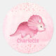 Personalised Cute Pink Dinosaur Classic Round Sticker