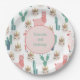 Cute Pink llama's and green cactus paper party plates. Personalise them with your child's name and year.