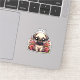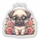 Cute chibi cartoon cosy little pug puppy dog sitting in pink flowers with a name that you can add in the personalise area.