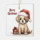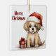 Personalised Cute Puppy with Santa Hat Christmas Ceramic Ornament